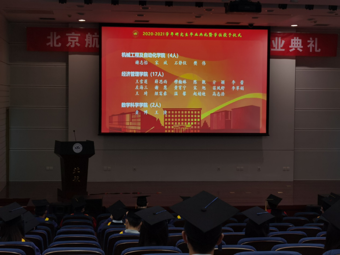 最后,衷心希望2021届毕业研究生志存高远、直面挑战、脚踏实地、勇于奉献,不忘初心,延伸北航的血脉,肩负起国家经济建设与社会发展的重任,在充满希望的明天,书写人生最为华美的诗篇。