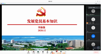 2020年12月30日晚7点,北航研究生党校“求真”分部第1期党建辅导员培训班线上开展第四次党课学习。本次党课由北京林业大学李海强老师为22名党建辅导员讲解发展党员基础知识。