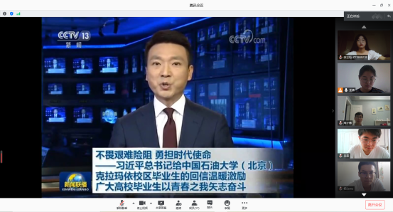 会议期间,班级同学共同对习近平总书记给中国石油大学(北京)克拉玛依校区毕业生的回信进行了有声朗读与心得交流。佘亚倩分享了陈腾辉扎根新疆、姚甜甜奔赴抗疫一线、虎桃平参加藏北扶贫项目等先进青年故事,正如习近平总书记所说,我们深刻体会到了“志不求易者成,事不避难者进”的道理,我们作为国家的中坚力量,生逢其时肩负重任,要不畏险阻志存高远,脚踏实地,将个人的理想与党和国家的建设联系在一起。扎根祖国基层的高校毕业生身上体现的担当与奋斗精神深深的鼓舞与激励着我们。作为正处于“两个一百年”奋斗目标重要历史交汇期的新青年,我们应该认真学习这种奉献精神,踏踏实实走好每一步,为中华民族的伟大复兴而奋斗。