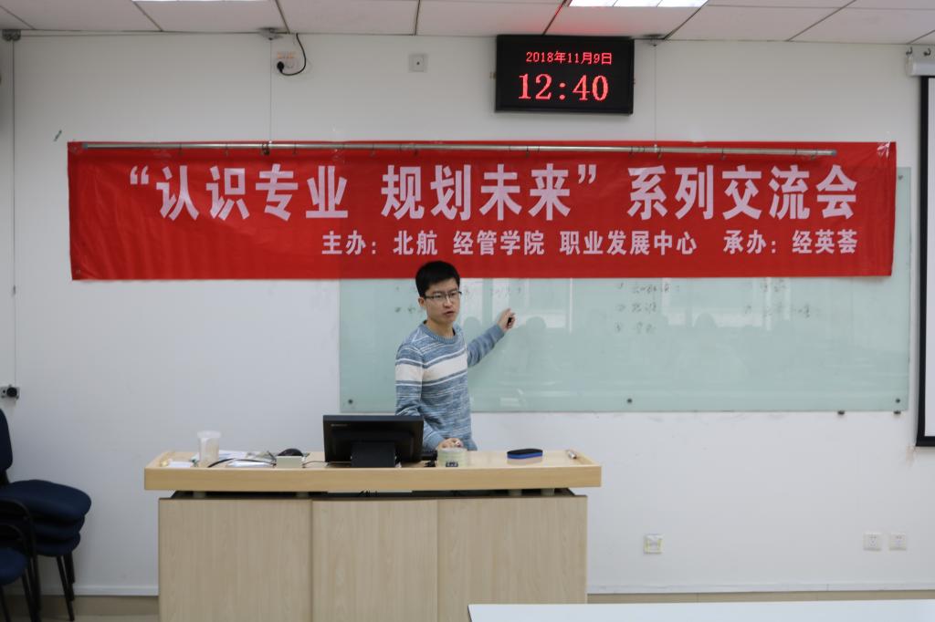 11月9日中午,经管公司“认知专业、规划未来”系列活动——读博申请交流会在新主楼A1048举行,来自硕士研究生一年级的近20名同学参加了活动,博士研究生兼职辅导员唐鹏飞与大家进行了交流。