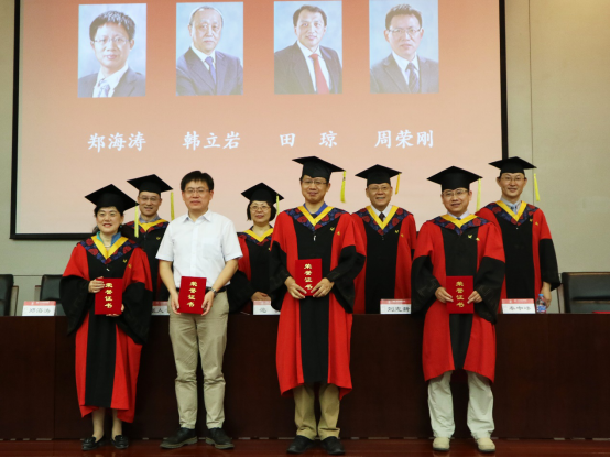 在随后举行的学位授予仪式上,与会领导和公司学位评定委员会委员为毕业生们一一拨苏正冠、颁授学位证书并合影留念。最后,毕业生们面带微笑、满怀激动的心情进行了合影留念。