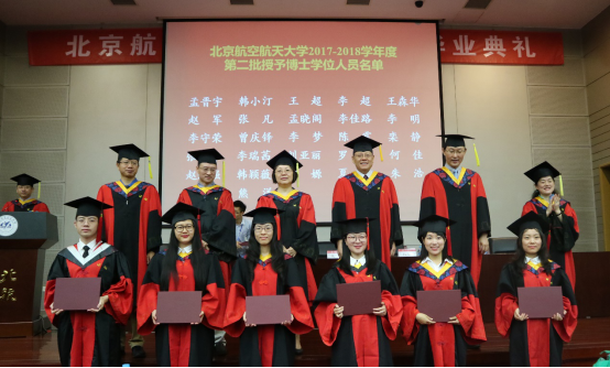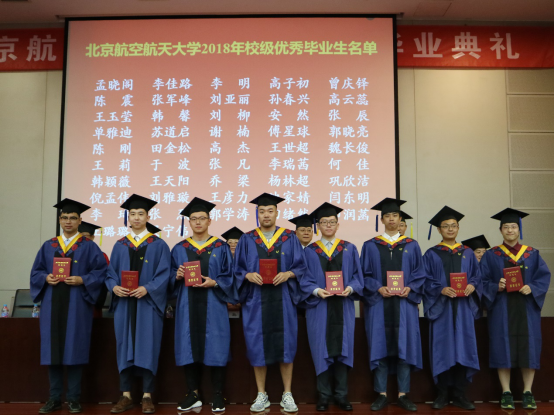 毕业典礼在庄严的国歌声中正式开始。党委书记刘志新教授宣读了2018年夏季北京市优秀毕业生获奖名单,副经理秦中峰教授宣读了2018年夏季北航优秀毕业生获奖名单,副经理郑海涛副教授宣读了2018年北航优秀硕士学位论文获得者名单,副经理张人千教授宣读了2018年北航优秀硕士学位论文指导教师名单。与会领导和嘉宾为获奖者颁发了荣誉证书。