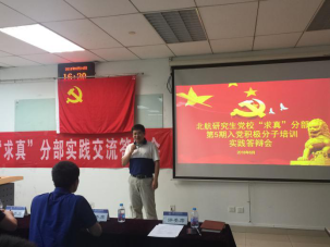 北航研究生党校“求真”分部第5期入党积极分子培训实践交流答辩会于2018年6月14日下午在主A928顺利召开。经过三次的党课学习之后,本次实践汇报环节通过学习研讨、实践体验、总结汇报等以小组的形式开展,采取多重主题共同交流的方式。共设置以下三个主题:“深入学习贯彻习近平总书记在北京大学师生座谈会上重要讲话精神”、“学习习近平总书记在纪念马克思诞辰200周年大会上的讲话精神 ”、“深入学习十九大会议精神(分专题学习)”。担任此次交流答辩会的评委老师有研究生综合管理处申永超老师、经管公司研究生指导主任单伟副教授、人文公司党委副书记张驰老师、经管公司分团委书记朱鹏宇老师。答辩会由经管公司研究生工作办公室主任衣萌老师主持。