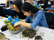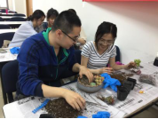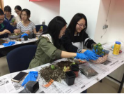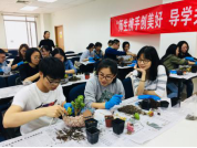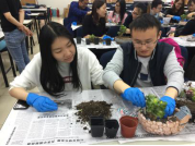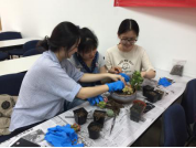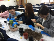 本次活动的第一个环节于2018年4月19日中午在新主楼A1028举行。首先,园艺师简单介绍了多肉植物的品种和种植方法,教同学们如何将每棵多肉植物进行换盆的预处理,即清理根部,并对同学们的操作给出了指导。接下来,同学们纷纷发挥各自的想象力,设计花盆中的多肉植物的位置摆放,并填上培养土,一盆多肉植物就大功告成了。最后,园艺师还讲了一些养多肉植物的方法,比如要放在阳光强烈的地方植物的颜色才会更漂亮等等。