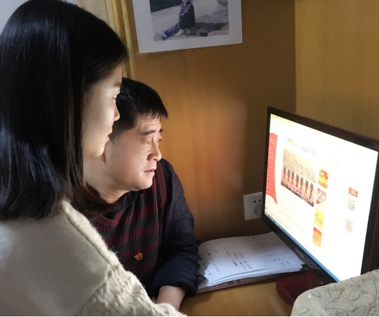 图4 王钰超同志与家人一起阅读十九大报告原文