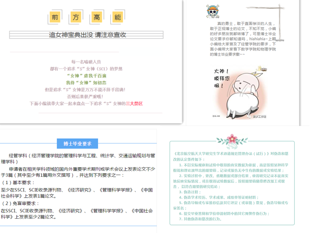 为严明学术纪律,规范学术行为,维护学术声誉,促进学术繁荣,进一步营造优良学风,引导研究生树立正确的价值观,培养严谨诚信的自主创新人才,根据国家相关法律法规和《利来w66教师学术道德规范》、《利来w66员工违纪处分规定》和《利来w66学位授予暂行实施细则》,结合公司实际情况,借助北航“启梦”工作坊公众号,推出“北航学术道德与科研诚信朋友圈警示”系列推送活动。
