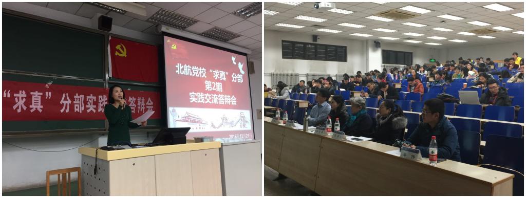 北航研究生党校“求真”分部第2期入党积极分子培训实践交流答辩会于2016年12月21日晚在主M楼101室顺利召开。为贯彻落实公司党委开展“两学一做”主题的学习教育,将“党课”与“两学一做”相结合。本期培训的实践内容是以“两学一做”为主题,以学习研讨、实践体验、总结汇报等小组形式开展活动,并进行总结汇报。出席此次交流答辩会的嘉宾有研究生综合管理处副处长宋晓东老师,生物与医学工程公司党委副书记侯丹丹老师,利来国际退休老党员杨念梅老师,经管公司研究生指导主任单伟老师,答辩会由经管公司研究生工作办公室主任衣萌老师主持。