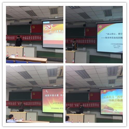 在答辩过程中,同学们都对前三次讲党课的老师表示了感谢,认为在前三次的党课中收获极大。在朱稼兴老师“和要求入党的同志谈入党问题及创新思想的培养”的党课上,同学们通过一个个鲜明的例子和对比,看到了中国经济目前的状况,更加坚定了实现中国梦的信念。在刘志新书记的结合“两学一做”做好高校基层党支部工作的党课上,同学们了解到了入党并不是终点,而是一个起点,要为成为一个真正合格的共产党员而努力奋斗。在杨念梅老师“党的作风建设永远在路上——论传承党的优良作风的重要性”的党课上,同学们了解到了如今飞速发展的中国在世界上的重要地位,并理解了只有中国共产党才能带领中国走向富强。这些同学还在每一次党课结束后提交自己对党课的理解和感悟。