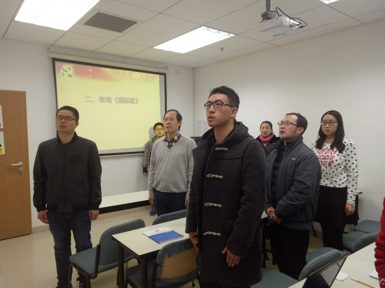 在介绍参会人员并面向党旗奏唱国际歌后,由Y16091党支部书记杨小博对两支部联合申请的创新基金项目进行了中期总结,全面细致地梳理了两支部目前已开展的各项活动,主要包括了“经数小站”沙河党员答疑活动、赴“双清别墅”红色教育基地的实践活动,同时,着重总结了已开展活动中存在的不足和缺点,并提出了相关改进的意见和建议。