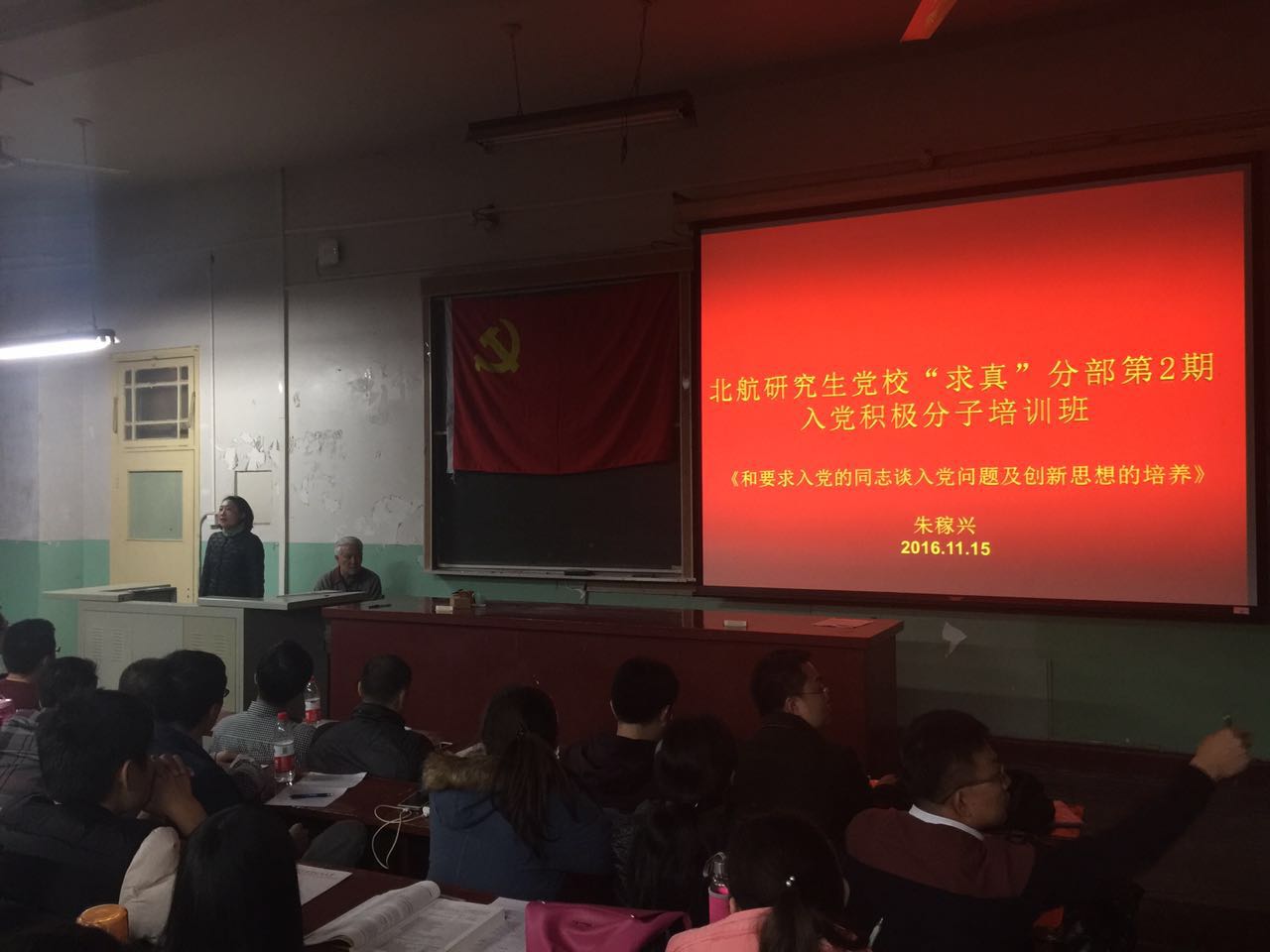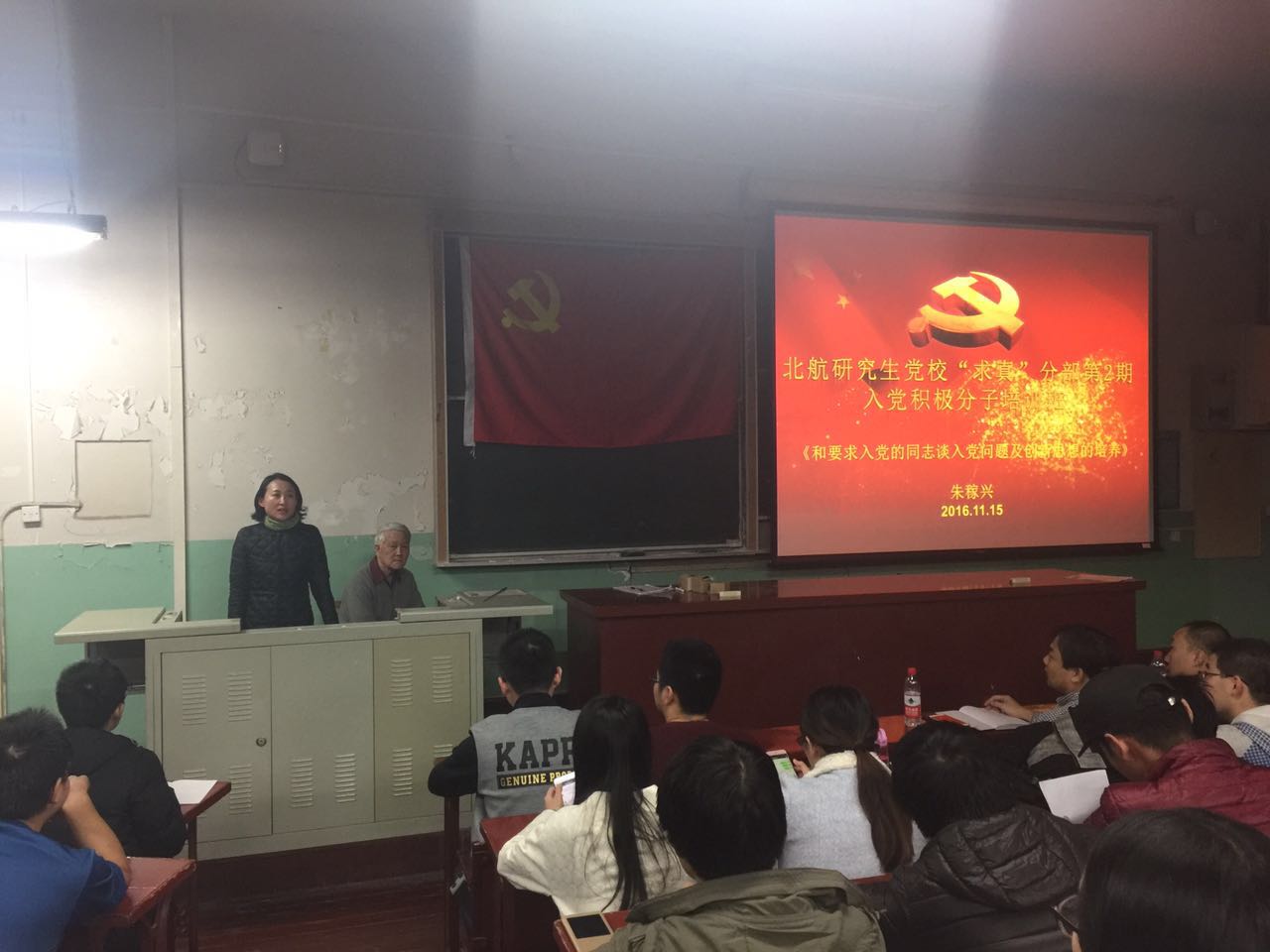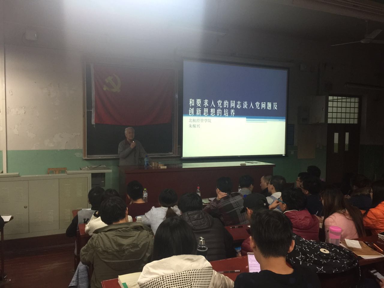 11月15日晚6点30分,北航研究生党校“求真”分部第2期入党积极分子培训班顺利召开,此次主讲嘉宾为经管公司退休老党员朱稼兴教授,培训主题为:和要求入党的同志谈入党问题及创新思想的培养。朱老师围绕关于入党动机、关于理想信念以及创新思想的培养等入党积极分子关心的问题为同学们一一进行了讲解。会议由北航经管公司研究生工作办公室衣萌老师主持。
