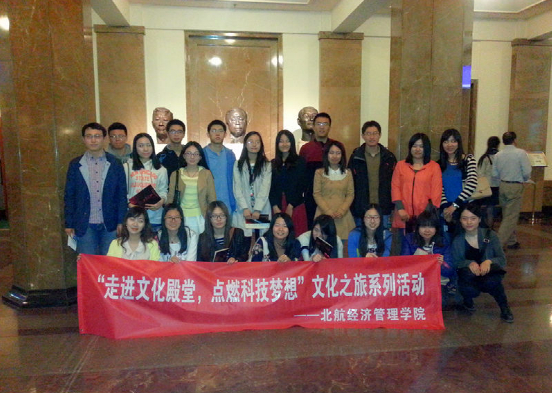 3月份由北航经管公司研究生工作办公室开启了“走进文化殿堂,点亮科技梦想”文化之旅系列活动,颐和园春游活动得到了同学们的一致好评。4月8日由经管公司分研会和SY13081班级共同协办的人艺戏剧博物馆参观活动及观看话剧《天之骄子》活动也成功举办。