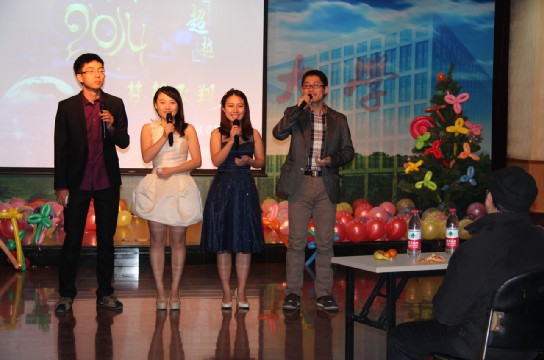 “新年拉近了我们成长的距离,新年染红了我们快乐的生活,新年让我们截取下了四季的片段,新年给了我们人生的蝉想。”在主持人热情饱满的祝词下,12月21号晚,以经管公司2013级研究生为主角的元旦联欢晚会在思源楼精彩上演。研究生指导主任牟晖老师、研究生工作办公室主任衣萌老师,管科系王立文老师以及三位美女导员莅临现场,与经管学子一起喜迎新春,相约2014。