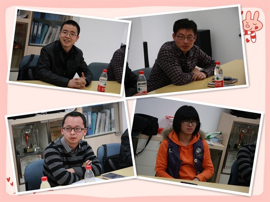 会议在轻松的交流与互动中进行,栾世超学长首先介绍了自己在找工作中的见闻,老员工职业测评的重要性,学术在求职中的重要程度,并提出了自己在面试中可供参考的一些技巧。黄帝学长则分享了自身在清华进行博士后学习工作的一些体验,对期望能继续从事学术研究的同学,提出发现自己的兴趣点的重要性;并结合当年公务员考试、高校求职的亲身经验,建议博士生提前做好自身职业发展规划,确定自己未来的方向,避免走弯路。鄢寒学长简要叙述了博士生在选择就职事业单位,行政机关等单位的基本流程,并劝告在读博士生,尽量争取出国学习的机会,能有效提升自己。毕翠霞学姐则介绍了博士研究生从事研究性机构的过程中,项目与论文经历与英语水平的重要性。