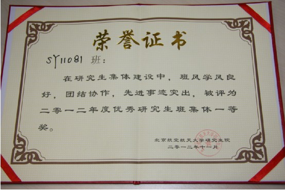 在最后的评选中SY11081班以精彩的汇报展示征服了现场的评委和观众,荣获“2011年度校优秀研究生班集体一等奖”荣誉称号。该奖项的获得是对SY11081班班级建设的肯定,是SY11081班全体同学的骄傲。