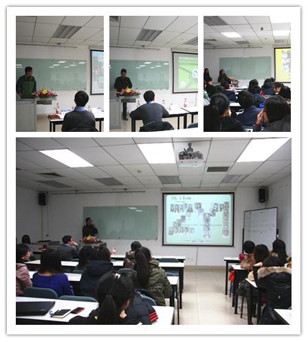 作为主持人的辅导员王腾飞,以良好的台风和富有亲和力的开场白很好地调动了同学们对班会的热情。班会首先展示了2012级硕士研究生大班的整体建设情况。PPT中,同学们熟悉的身影、温暖的笑容、玩笑时的欢乐表情、认真做志愿者的场面历历在目。