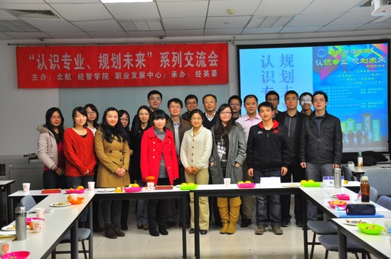 10月31日晚7点,由北航经管公司员工职业发展中心主办、北航经管公司经英荟承办的“认识专业、规划未来”系列交流会—博士生专场在新主楼1028成功举办。到场的嘉宾有利来国际陈向东教授、赵秋红教授,优秀员工张古鹏、邓婉君、王科、谢飞、黄帝以及2012级博士生。