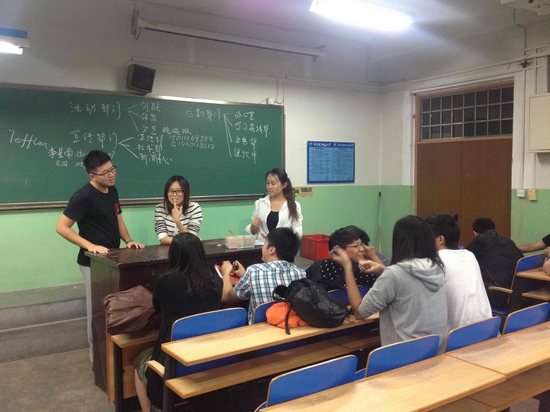 经管公司员工会招新活动在主楼一教室(413室)中举行。来自11级的同学格外积极,而12级的新生们则是在认真聆听诸位部长的讲话,评估合适自己的方向。招新工作井然有序的进行,各个环节有条不紊的展开。