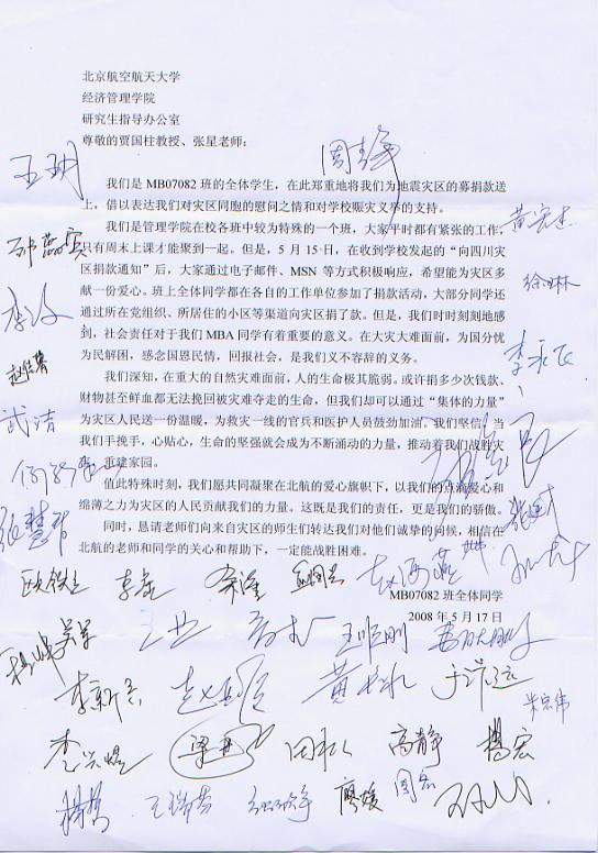 当地震横扫我们川北大地时,全国人民都在关注。我们北航MBA2007级员工王业同学在5月21日赶赴了四川参加救援行动,于5月24日回到北京。回来后给我们讲述了他的亲身经历,原本想对他的稿件删节一部分,但是字里行间流露出的切切真情让我无法删改,特此保留全文。并在此代表我们所有北航MBA同学向他致敬。