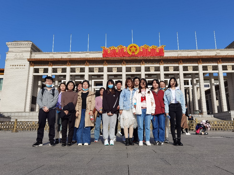 自由参观后,SY2008(一)党支部带领党员同志和同学们在国家博物馆门口集体合唱了《我和我的祖国》,唱支歌儿给党听,表达同学们对于祖国的热爱。