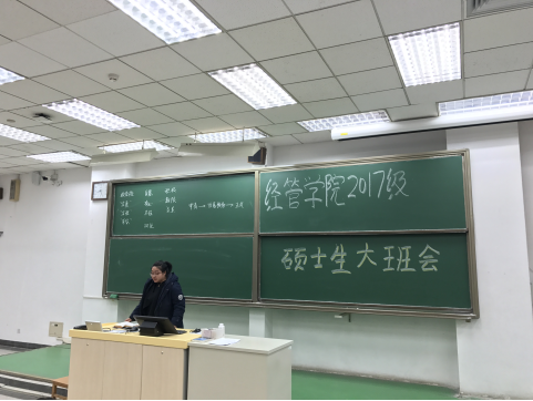 2018年3月9日晚8时,经管公司2017级研究生新学期大班会在主M102顺利召开。经管公司研究生工作办公室主任衣萌老师、研究生党务工作处张慧美老师、研究生辅导员侯树森及2017级全体研究生参加会议。
