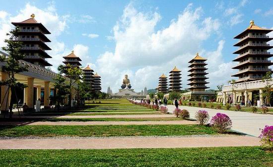 第七天我们去了佛光山佛陀纪念馆,佛光山是台湾最大的佛教道场,由星云法师1967年创建。在其提倡的“人间佛教”之道影响下,众信徒从一砖一瓦开始,经过几十年的的建造和修葺,将一座荒山建满了规模宏伟的寺院建筑,成为台湾信众最多的佛教圣地。