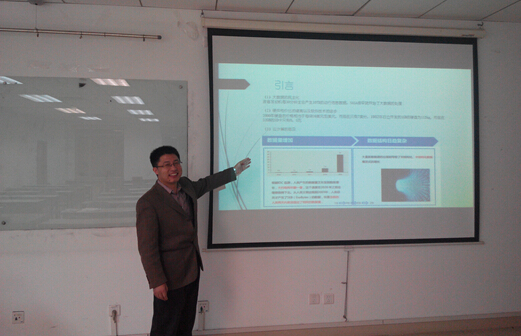 第一位宣讲人是王丹,题目是《基于感知价值视角的微博用户黏性分析》,站在感知价值的角度对微博网站的用户黏性进行了分析。通过对168名微博用户发放调查问卷,收集数据。运用验证性因素分析与路径分析的方法验证假设与模型是否合理。最终得出用户感知价值是如何影响微博用户黏性的,并为怎样提高用户黏性提出合理的建议。第二位宣讲人是罗婷,题目是《考虑延误时间成本的最优路边停车策略研究》,研究了延误时间成本作用下,出行者面对路边停车空位随机分布的寻位策略选择。第三位宣讲人是王军,题目是《大数据处理技术在生产质量跟踪中的应用》,采用Hadoop技术,设计了部署于企业私有云平台的分布式技术架构。实施了企业范围的数据采集与迁移工作。并在大数据平台之上,开展了数据分析与可视化的工作。论文作者的精彩讲解赢得了在场同学的热烈掌声。