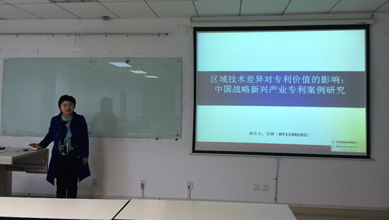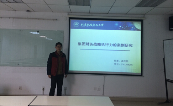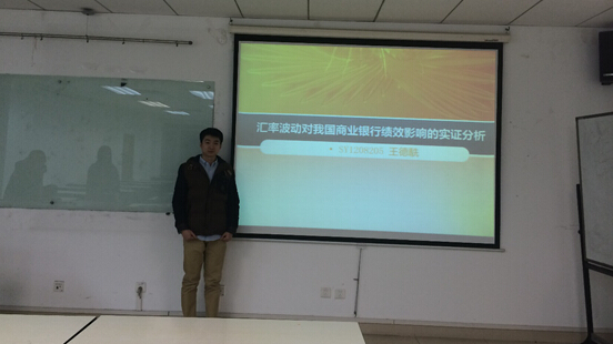 第一位宣讲人是孟茂然,题目是《集团财务战略执行力的案例研究》,采用案例研究方法,考察华迅集团转型前后财务战略执行力的变化。第二位宣讲人是王德駪,题目是《汇率波动对我国商业银行绩效影响的实证分析》,通过构建面板数据模型,利用在上海交易所上市的商业银行的财务数据检验了汇率波动对于商业银行绩效存在的影响,以及这种影响是否具有显著性。结果表明汇率波动与商业银行绩效并不存在显著的相关关系,商业银行绩效对于汇率波动并不敏感。第三位是宋爽,题目《区域技术差异对专利价值的影响》,将区域技术差异放入专利存续期这一研究视角下,计算中国1985至2009年间战略新兴产业的区域技术差异。论文作者的精彩讲解赢得了在场同学的热烈掌声。
