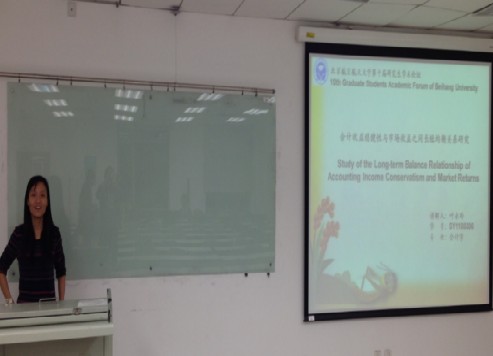 三位作者依次带来了题为《Study of the Long-term Balance Relationship of Accounting Income Conservatism and Market Returns》,《基于或有权益分析的我国主权风险量化分析》以及题为《居民如何形成通胀预期——基于中国居民异质性的调查数据》的学术论文。其中叶永玲的论文以股票市场为例,采用协整关系基础上的误差修正模型研究会计稳健性与资本市场价格稳定性的相互影系,结果表明会计收益稳健性与市场收益间存在着长期均衡关系这引起了关注股票市场的同学们的极大兴趣。俞良慧引入或有权益分析方法,结合中国经济发展的现实背景,将该方法用于我国政府主权风险量化分析,他的研究丰富了我国主权风险管理理论方法体系,为管理和防范我国主权风险提供了工具和手段,具有一定的理论研究和实际意义。而徐迎迎在比较五种通货膨胀预期形成模型的基础上,构建一个混合高斯模型,利用中国人民银行《居民储蓄问卷调查系统》的数据度量预期通货膨胀率以及感知通货膨胀率,研究我国通货膨胀预期形成过程中的异质性。