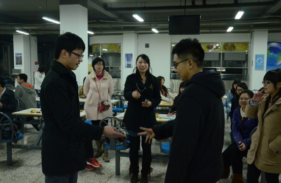 三月,是一个草长莺飞的季节,是一个充满春天气息的月份。为体现经管公司特色,为营造经管公司独有的温馨氛围,本次活动希望通过一起过生日的方式,促进大家之间的相互交流,让大家进一步地感受到经管公司的温暖。活动在一片快乐的气氛中开始了,在主持人致辞之后,在游戏主持人的带领下,大家参与了第一个游戏——“一块五毛”, 游戏规定同学们分两组对抗,每组男女各三人,女同学为“一块”,男同学为“五毛”,由主持人随意说出一个钱数,哪组最先完成正确组合为胜出方。在几轮激烈的对抗之后,两组同学分出了胜负,负方接受了有趣的惩罚。