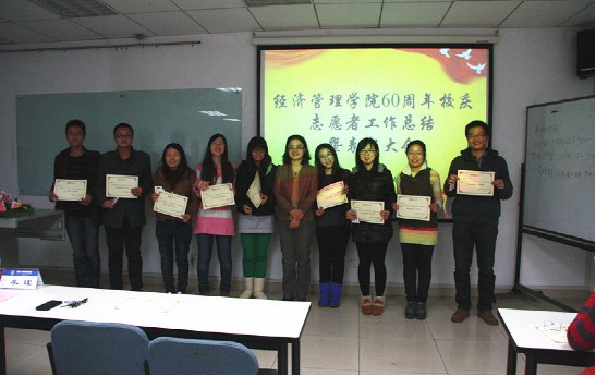 2012年11月26日晚20:00,经管公司所有研一同学在新主楼A928召开了研一大班会暨校庆志愿者表彰大会,SY12082班集体也应邀到场参会,认识全体同学,团结自身建设,感悟过往成果,开启新的起航。