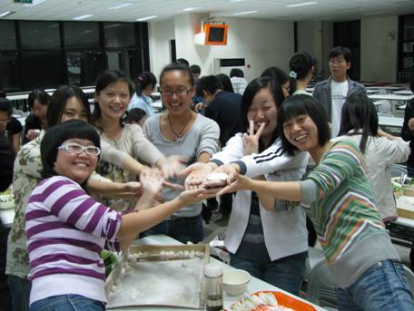十月十八号晚上七点,合一楼三层音乐飘扬,欢声笑语不绝于耳,大家沉静在一片喜气洋洋的欢乐气氛中。如此热闹原来是SY08081班的同学正在集体包饺子庆祝他们入学满月。