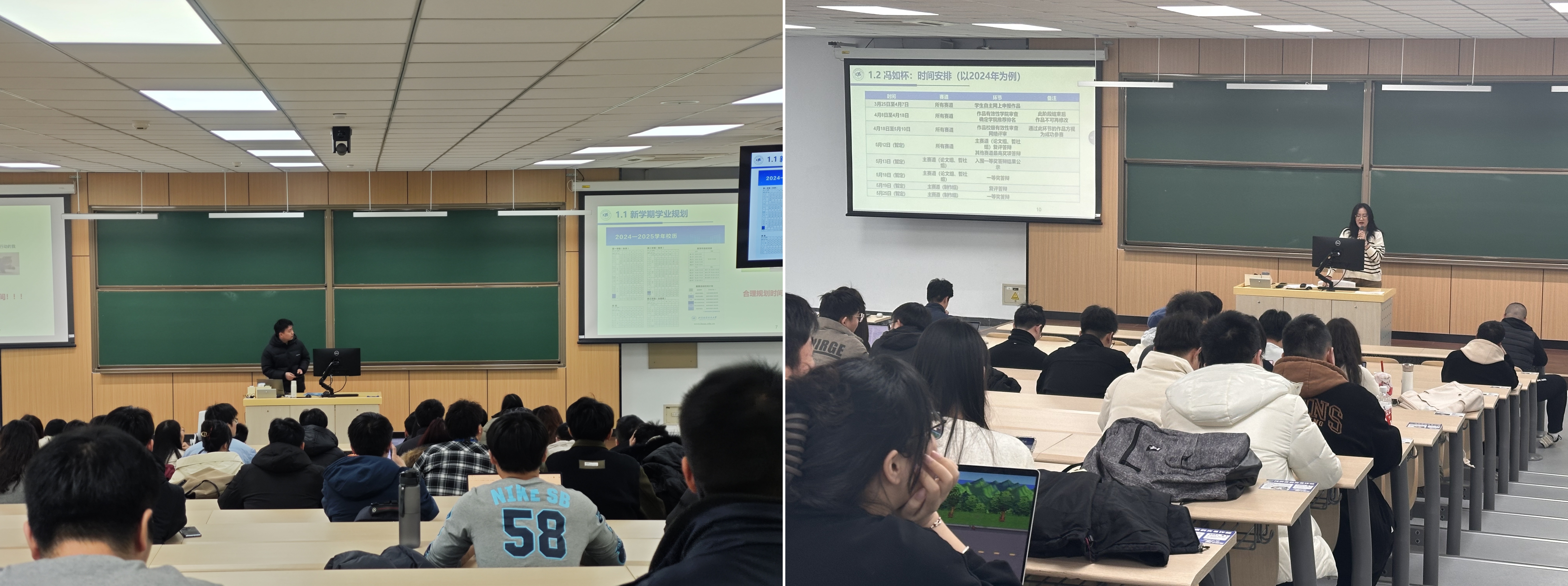 在大班会上,公司研究生兼职辅导员米赟、张勋围绕学业规划、职业发展、心理健康、安全教育等多个维度,为同学们送上了细致且实用的提醒。专职辅导员朱帅东、陶雨芊也为同学们送上了暖心的关怀与提醒,让同学们在满满的关爱中,对未来的学习生活有了更为明晰的认知与充分的准备。