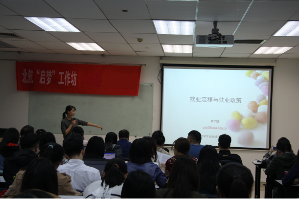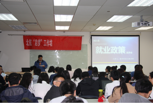 为了使经管公司研究生毕业生系统地了解2018年北京市教委及北航的就业相关政策,10月20日晚7:00,由北航“启梦”工作坊主办,经管公司职业发展中心和“尚学敏行”工作坊联合承办的《2018年研究生毕业生就业政策宣讲会》在新主楼A928教室成功举办。
