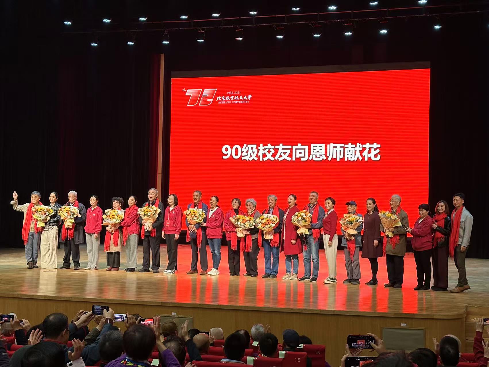 这份对员工的赤诚与付出,也收获了最真挚的回响。她连续数年被员工推选为心目中的恩师,在校庆盛典上,更是被学子们簇拥着,亲手接过饱含敬意与感恩的鲜花。即便时隔数十年,员工们每逢回京,总会专程看望她,这份跨越岁月的认可与牵挂,让杨念梅老师倍感温暖。