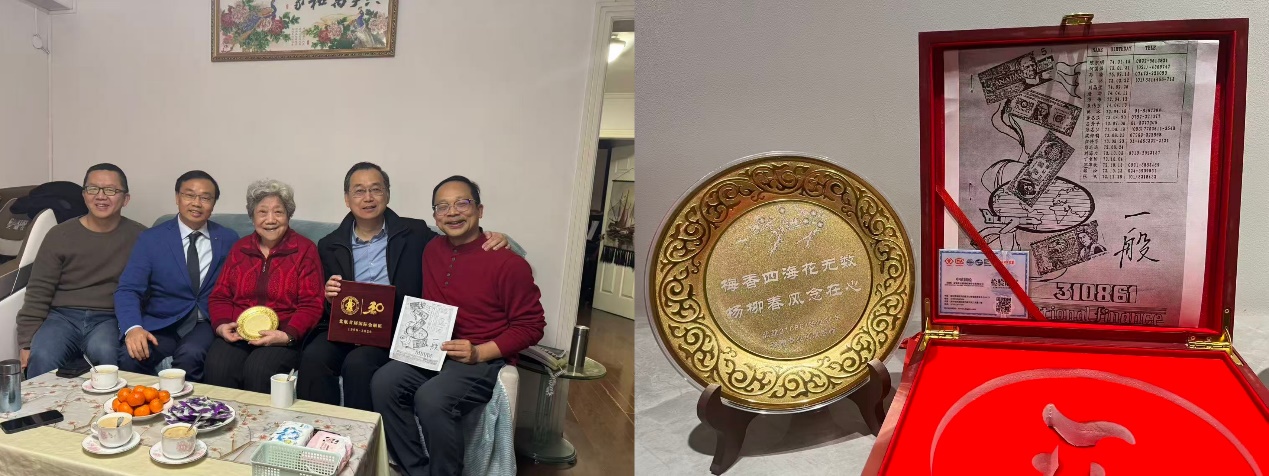 2025年,首届金融尖子班员工毕业三十周年,为杨念梅老师送来了以名字为诗的镀金盘