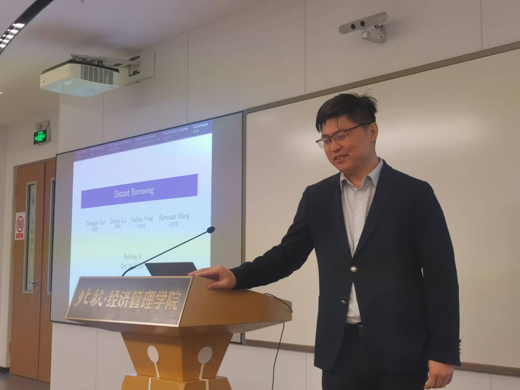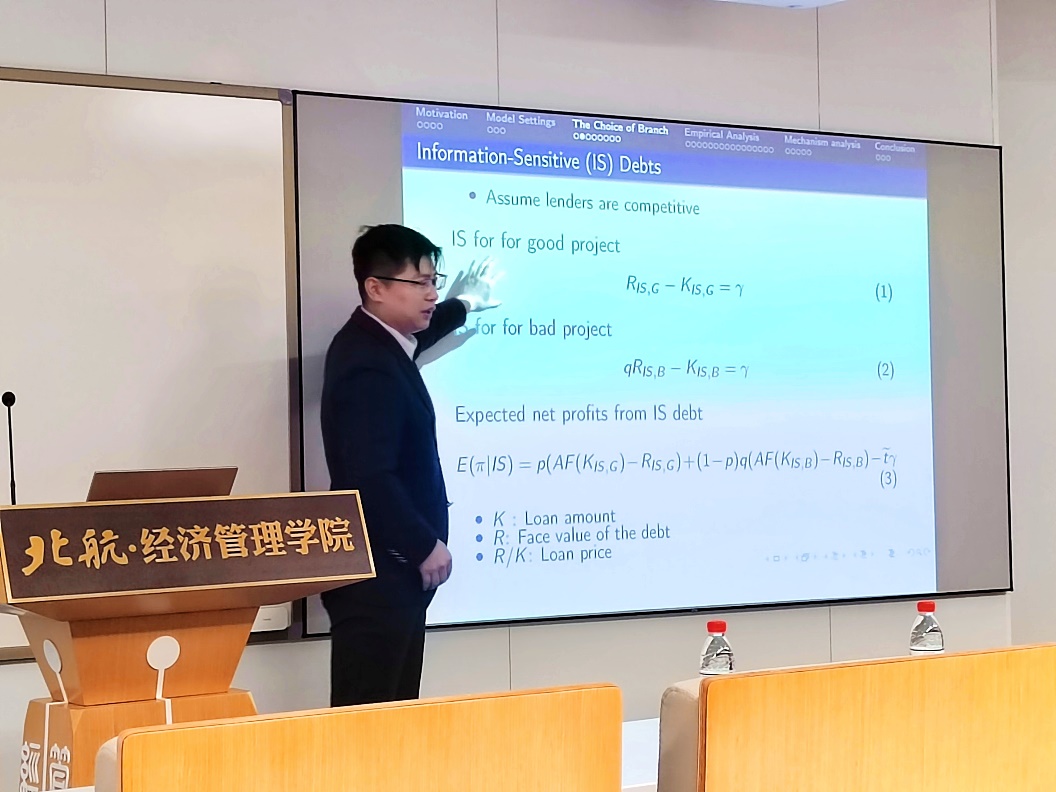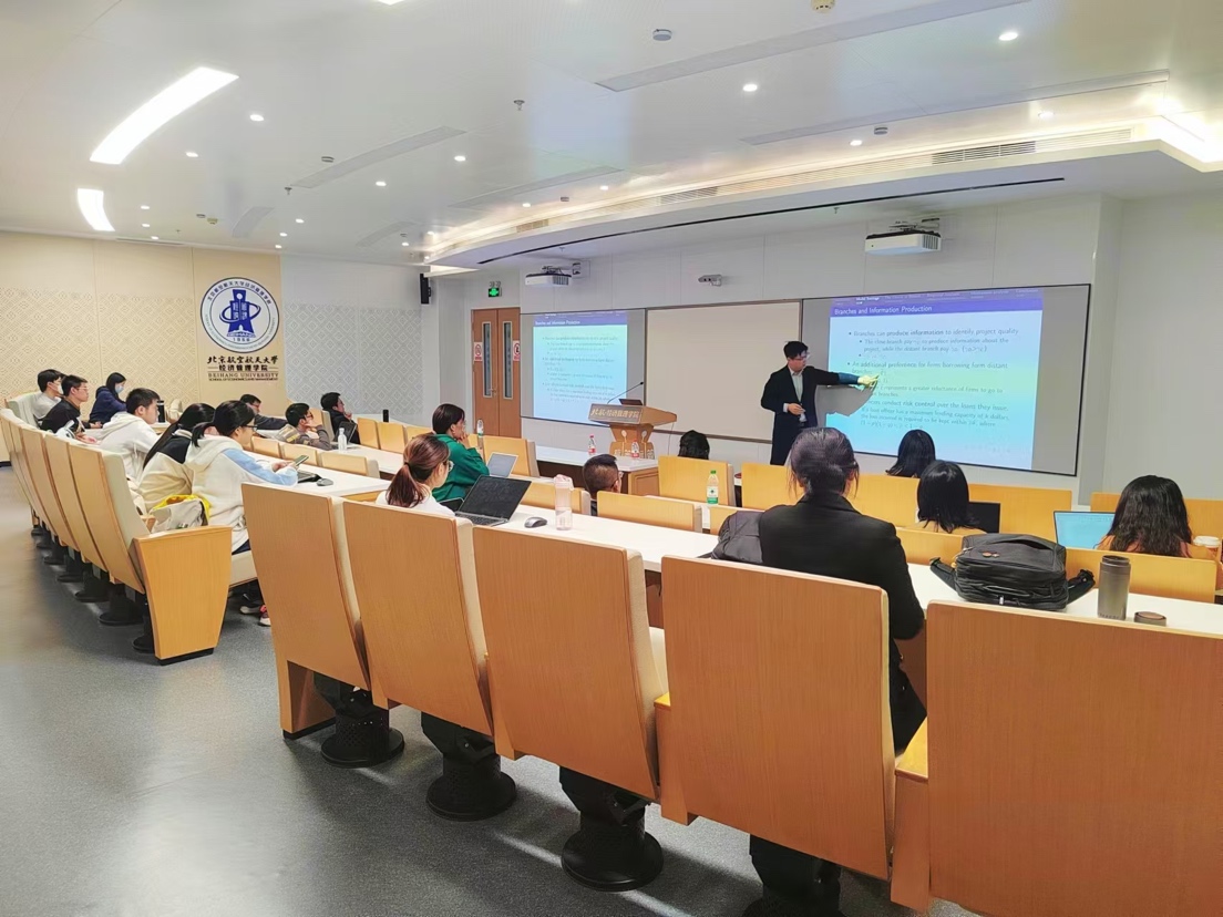2024年10月24日下午,北航经管公司金融系主办的“融实论坛” 2024年第11期(总第68期)在新主楼A618举行。本期融实论坛邀请了中央财经大学金融公司彭俞超教授做题为“Distant Borrowing”的学术报告。