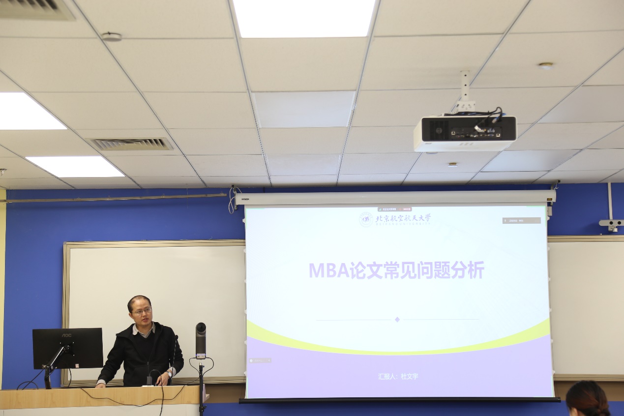 第二个环节是“近年MBA论文常见问题分析”。杜文宇副教授结合近两年经管公司MBA案例研究类论文的实际情况,分析论文中常见的问题和不足之处。他从选题的创新性、研究的深度、数据的可靠性、结论的合理性等多个方面入手,深入剖析问题的根源和解决方法。