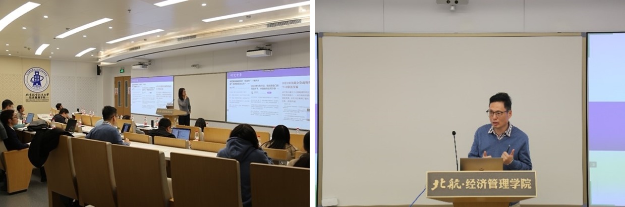 第二半场的学术交流邀请了三个学术报告,并由评论人对论文进行了点评。南京大学苏彤副研究员做了题为“行稳方能致远:中国煤炭市场运行特征与价格政策评估”的报告,该报告探讨了作为中国能源安全的“压舱石”的煤炭,在积极稳妥推进碳达峰、碳中和目标进程中发挥重要作用。北航经管应用经济系的刘炳越副教授对这篇论文进行了点评。南京财经大学的孔傲博士做了题为“高频交易、算法趋同与个股流动性—来自上交所Level-2行情中断自然实验的证据”的学术报告,该论文主要是研究了中国市场高频交易对股市流动性的影响。北航经管金融系杨海军教授对这篇论文进行了点评。北航王论意博士做了题为“Probabilistic Optimism and Price Inertia”的学术报告,该论文主要是构建理论模型解释价格惯性。北京化工大学张强教授对这篇论文进行了点评。第二半场的学术论文交流由北航金融系洪洁瑛副教授主持。