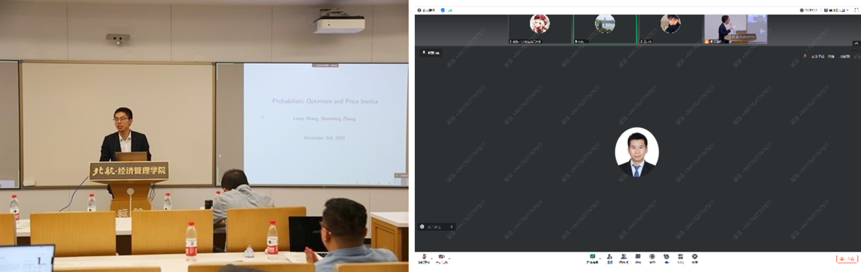 学术论文交流环节之后,融实论坛专题论坛迎来了特邀主旨报告人天津大学管理与经济学部张永杰教授,为本次论坛做题为“Carpe diem as danger nearby: How does individuals’ spending change in response to the COVID-19 pandemic risk?”的主旨报告。该研究主要关注新冠疫情对人们消费行为和金融投资的影响。与会的金融系师生与张教授展开了热烈的讨论。主旨报告由北航经管金融系石丽娜助理教授主持。