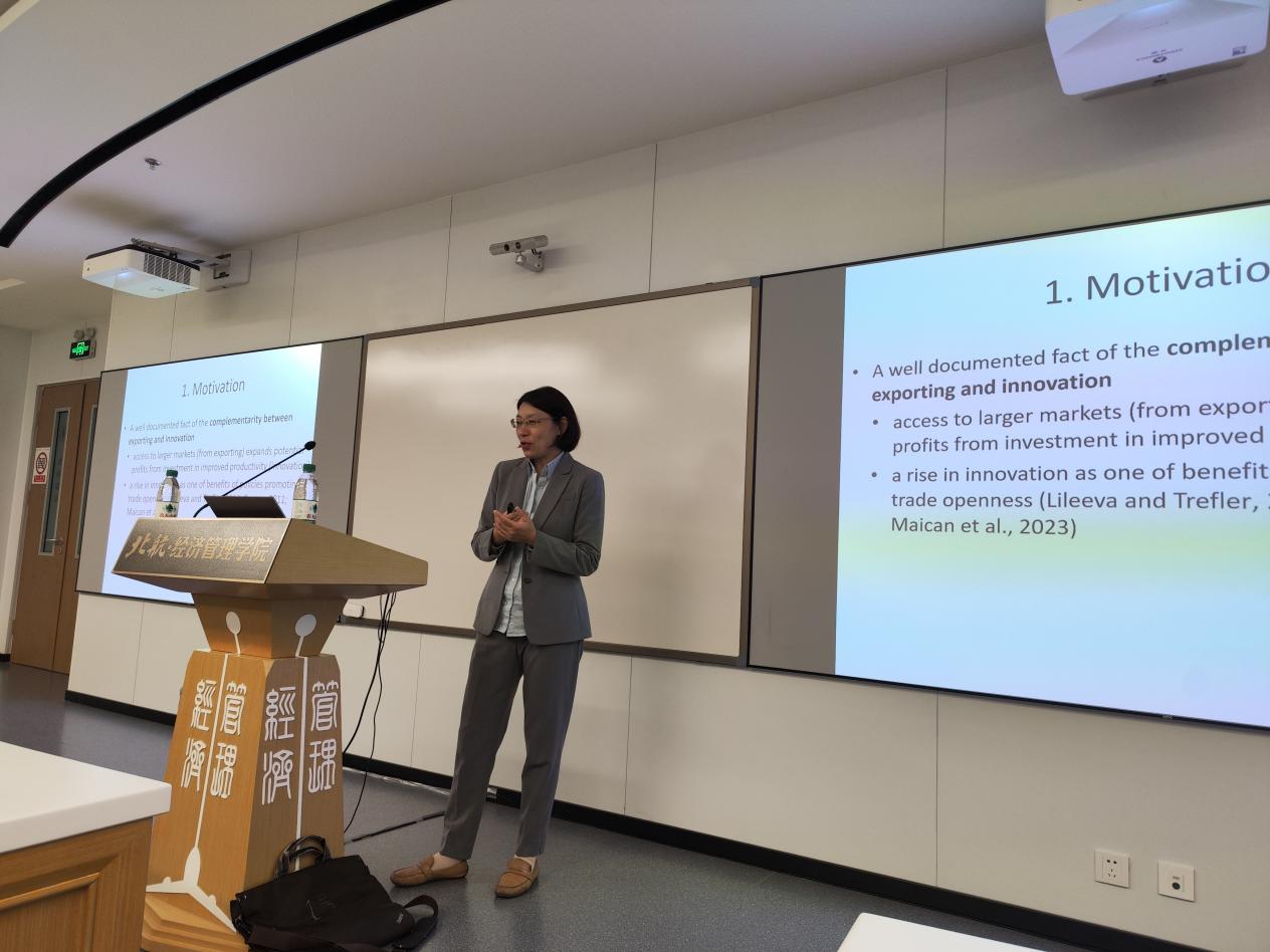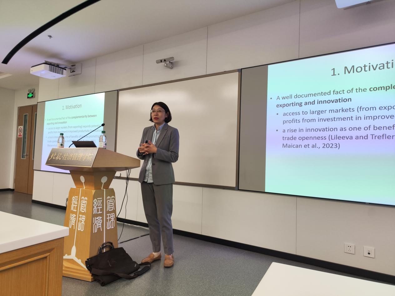 冯教授的文章聚焦于企业出口、创新和资本结构的企业决策上,已有研究表明企业通过出口进入更大的市场,扩大了创新的潜在收益,企业出口和创新具有互补效应。然而对于小企业,由于融资约束的问题,企业进入出口市场后,创新反而减少,创新和出口变为替代效应。基于此,冯教授试图探究企业资本结构、创新和出口在企业决策中的动态关系。