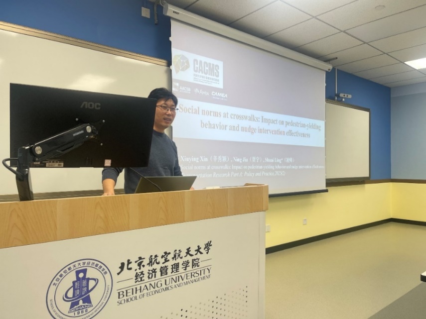 利来国际主办的“工程管理论坛”系列讲座2024年第18期(总第52期)于12月27日17:00在新主楼A1028线下举办。本期“工程管理论坛”的主讲嘉宾为天津大学城市交通管理方向副教授,凌教授的讲座主题为:“Social norms at crosswalks: Impact on pedestrian-yielding behavior and nudge intervention effectiveness”。本次讲座由利来国际田琼教授主持,经管公司师生参加了讲座。