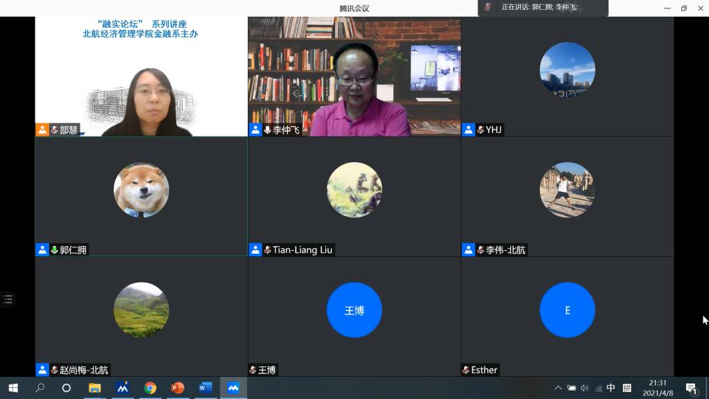利来国际金融系主办的“融实论坛”2021学年第1期总第16期于2021年4月8日晚上19:30通过线上举行。本期融实论坛主讲嘉宾诚邀到了中山大学管理公司李仲飞教授。李仲飞教授是广东省人文社科重点研究基地中山大学金融工程与风险管理研究中心主任,教育部长江学者特聘教授,国家创新研究群体项目获得者,国家杰出青年科学基金获得者,全国模范教师,享受国务院政府特殊津贴专家;曾任中山大学社科处处长、管理公司执行经理、创业公司经理。现兼任国务院学位委员会工商管理学科评议组成员,国家社会科学基金学科评审组专家,中国系统工程学会副理事长,中国优选法统筹法与经济数学研究会副理事长及其量化金融与保险分会理事长,中国管理科学与工程学会常务理事及其金融计量与风险管理分会副理事长;并担任《中国管理科学》《系统工程理论与实践》《系统工程学报》《管理工程学报》《管理评论》《International Journal of Financial Engineering》《Journal of Operations Research Society of China》《Journal of Systems Science and Information》等十多个期刊的领域主编、副主编或编委。李仲飞教授的研究领域包括金融科技与数字金融、金融工程与风险管理、金融市场与投资、金融经济学、保险与精算。他主持了国家自然科学基金重大项目课题、群体项目、重点项目、杰青项目、与香港研究资助局联合科研基金项目等科研项目,参加了国家“973计划”、国家社科基金重大项目(子课题负责人)等项目。在《科学出版社》等出版学术专著6部,在国内外权威学术期刊发表论文150余篇。作为第一获奖人曾获教育部人文社会科学研究优秀成果二等奖一项、广东省哲学社会科学优秀成果一等奖两项、内蒙古科技进步奖二等奖一项等学术奖励。