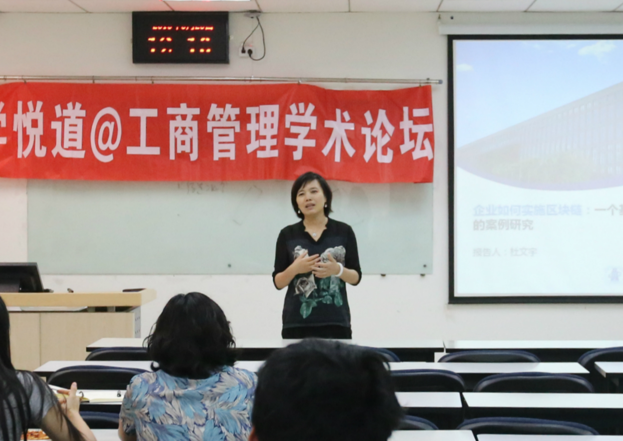 本期论坛的主讲人是信息系统系的卓百博士后杜文宇博士,他分享的题目是“企业如何实施区块链:一个基于可供性实现理论的案例研究”。杜博士指出,作为一个新兴的金融科技(FinTech),区块链将催生新的战略信息系统,对组织产生深远的影响。作为一个新兴的现象,信息系统领域目前针对区块链的研究还很有限。现有研究主要关注区块链的潜在价值。如何有效实施区块链还是一个黑箱。杜博士采用可供性实现理论(Affordance-ActualizationTheory)作为视角,深入探索了一个区块链实施的案例。研究发现区块链在组织中的三种可供性,以及实现这些可供性的过程模型。这一过程模型拓展了可供性实现理论,在其基础上增加了实验环节。在实验环节中,组织通过概念重塑和约束缓解开发了区块链的本地应用。研究结果对区块链文献和可供性实现理论有重要贡献。在实践价值方面,研究结果可以帮助IT从业人员在企业中有效实施区块链。