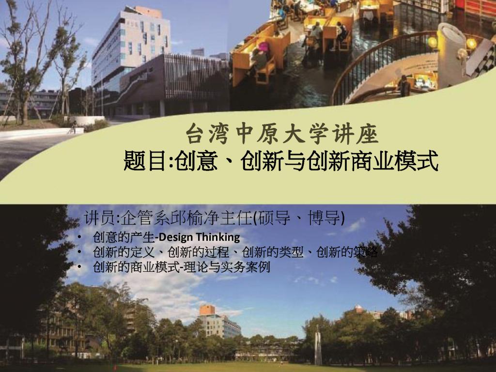 台湾中原大学企业管理学系主任邱榆净教授将于2016年11月2日来公司做学术报告。报告以“创意、创新与创业管理”为专题。欢迎老师、同学们积极参加!