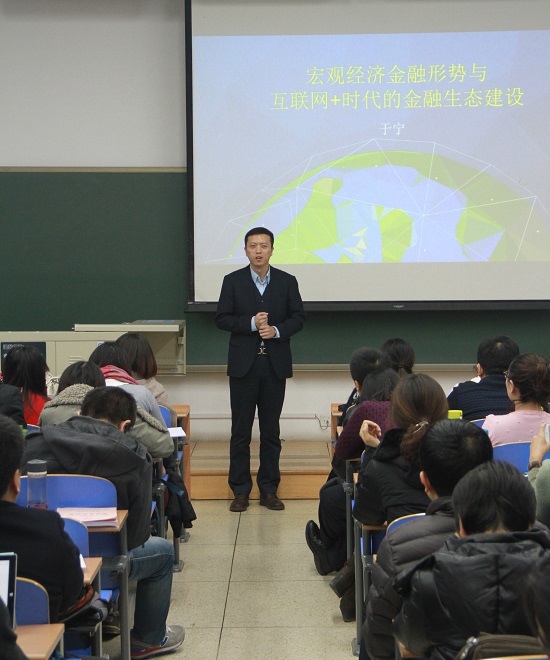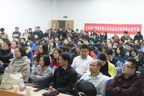 2015年11月28日18:30,中国人民大学财政金融公司金融学博士,美国纽约大学Stern商公司博士后于宁先生应北航MBA中心和联合会邀请前来,会同北航MBA师生及慕名前来的北京各高校MBA联盟主席,就宏观金融形势和创业融资等进行了详细的分析和讲解。