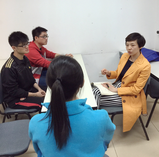 第一个环节是无领导小组讨论环节,首先分成了四组,首先由老师提出一个问题,要求由4位同学组成的无领导小组在10分钟内讨论出结果,然后无领导小组成员积极讨论并顺利完成任务,最后两位老师对每位成员的表现进行分析和点评,指出不足之处并提出改进的建议。