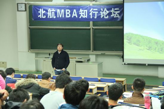 2015年3月14日晚,新学期首场MBA知行论坛在主M102教室热烈开讲。本次活动邀请到我航优秀员工、现任北京钱粮科技有限公司创始人兼首席执行官康睿先生,为同学们讲述创业这些年的那些事儿。