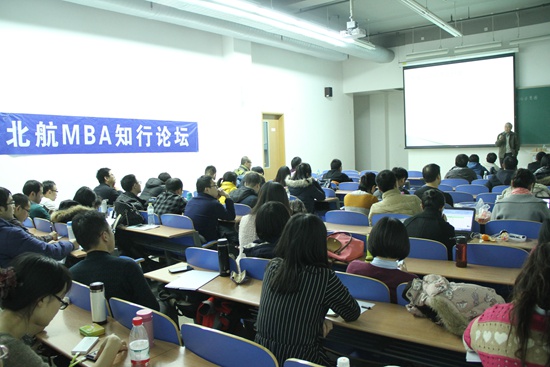 2014年12月28日晚,北航MBA知行论坛在新主楼B座118教室再次开讲。本次活动邀请到中国游戏行业初期颇负盛名的先驱人物边晓春先生,边先生丰富的履历吸引了众多MBA员工和员工到场聆听,“创业时机的挑选、怎样能做得出彩”也是大家最关注的命题。边先生结合个人多年从业经验及创业史,将自己奋斗历程中重要的转折点,以“过来人”的身份向大家娓娓道来。