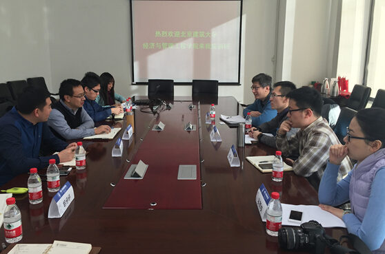 2014年12月5日下午,北京建筑大学经济与管理工程公司党委副书记魏强、分团委书记曹晓云、专职辅导员左一多、吴雨桐一行四人来公司交流访问。公司党委副书记王喜忠、专职辅导员张驰热情接待了来访嘉宾,兼职辅导员胡婷婷、杨阳彤晞、黄河、闫琦也参加了此次会议,并参与交流、讨论。