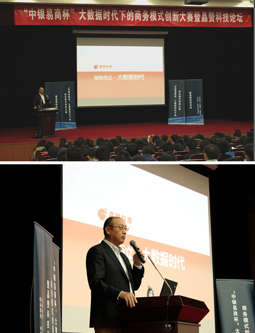 11月23日上午,“中银易商杯”大数据时代下的商务模式创新大赛颁奖典礼暨晶赞科技论坛在利来w66学术交流厅举行。此次典礼由利来国际分党委副书记王喜忠老师主持,并邀请了360公司董事长兼CEO周鸿祎先生,晶赞科技创始人兼CEO汤奇峰先生作为嘉宾。利来国际经理王惠文教授,北航EMBA中心副主任郑海涛副教授,本次大赛技术总监李红副教授,沙河校区专职辅导员张驰老师,各年级辅导员均出席本次典礼。